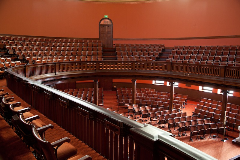 Another interesting and related feature of the Lovely Lane main church space is the comfortable seating, in beautiful cast iron seats covered in velvet and disposed in ways similar to a theater in two levels (ground level and gallery). An innovative central heating system was also installed in the newly constructed building. All of this was meant to contribute to the comfort, ease, and dignity of the church activities. Those elements of the building, together with its warm dark red colors, were restored to their original form in the 1980s. That the idea of comfort and ease should be associated with church services in many ways determined the layout and internal organization of this building. That way, the building itself was meant to contribute to the purposes of the Methodist church.